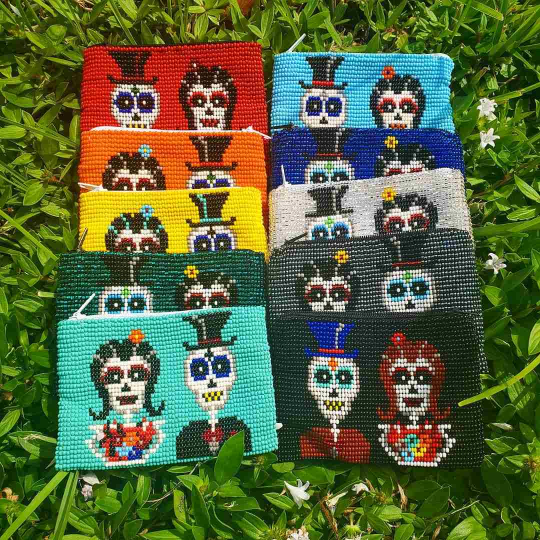 Incredible patience and skill are put into these luminous and traditional beaded coin purses. Carry your loose change with spooky glamour and charm as you rock this Day of the Dead Mexican holiday inspired piece.