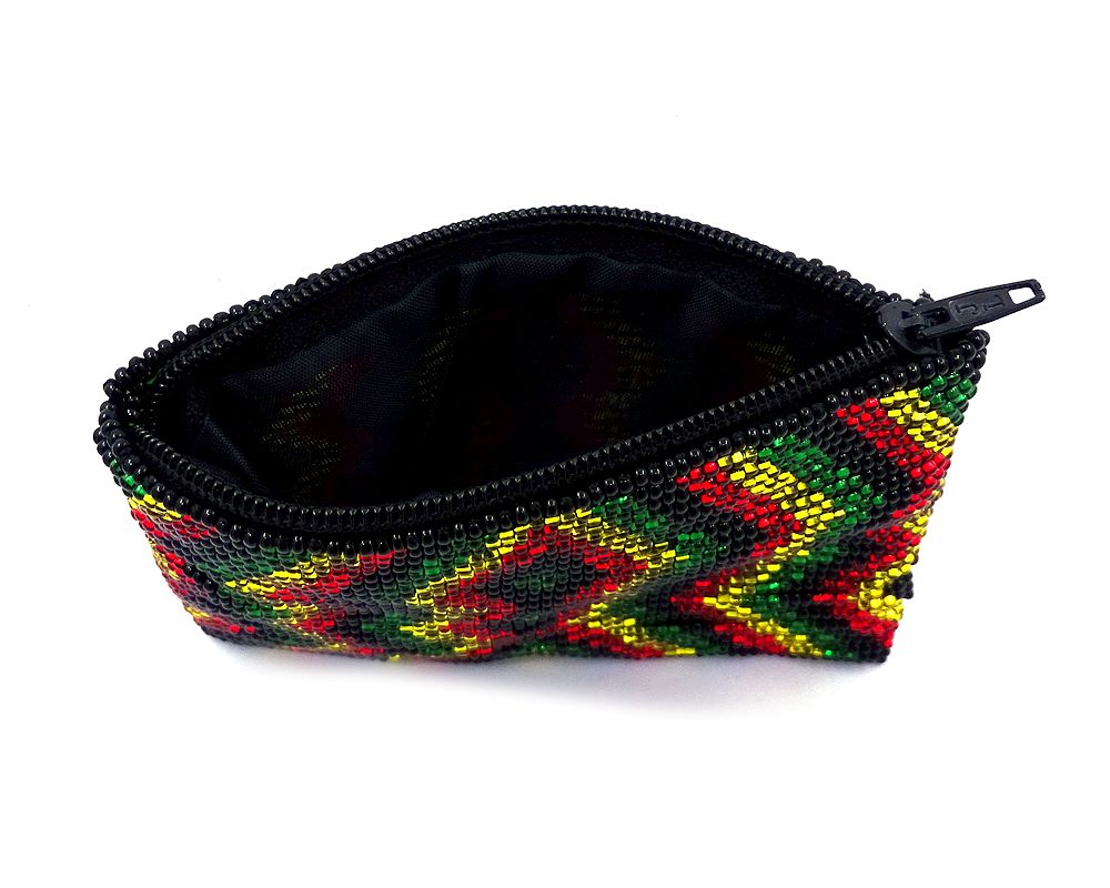 Incredible patience and skill are put into these luminous and traditional Rasta bead coin purses. Carry your loose change with ethnic glamour and charm as you rock this Rastafarian piece.