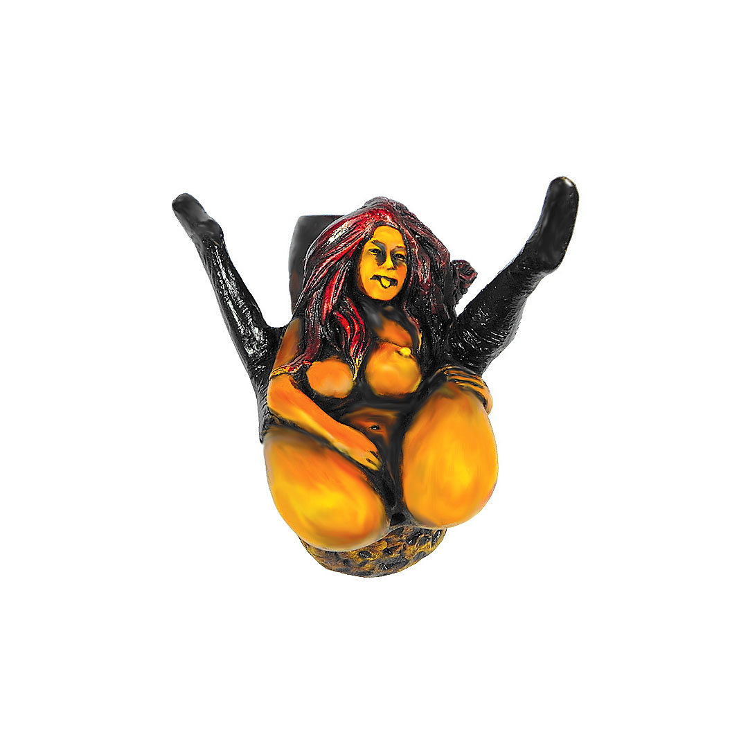 Handcrafted medium-sized tobacco smoking hand pipe of a sexy nude girl in boots masturbating with legs up.