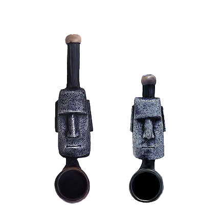 Handcrafted tobacco smoking hand pipe of a gray Polynesian Moai head from Easter Island. Available in mini and small sizes.